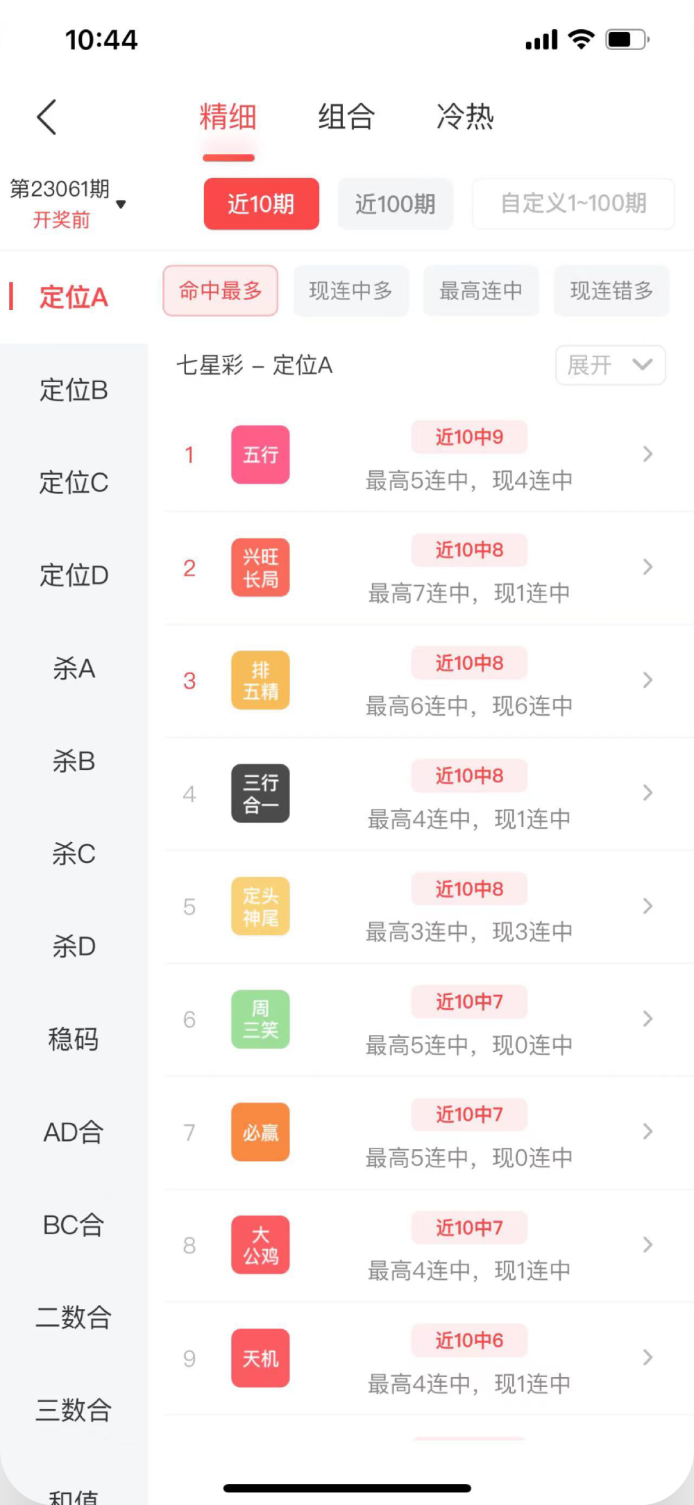 支持冷热号、组合、大底等多维度统计分析。